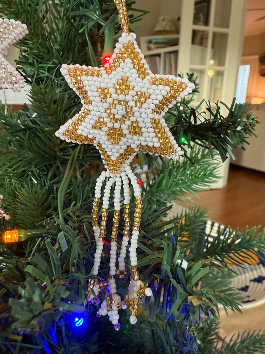 Holiday Multicolor Beaded Star with Tassel Ornament