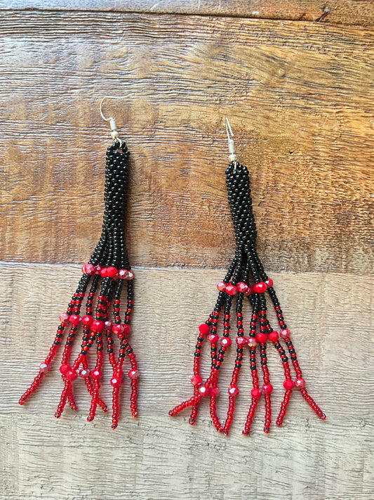 Winter Cardinal Fringe Earrings