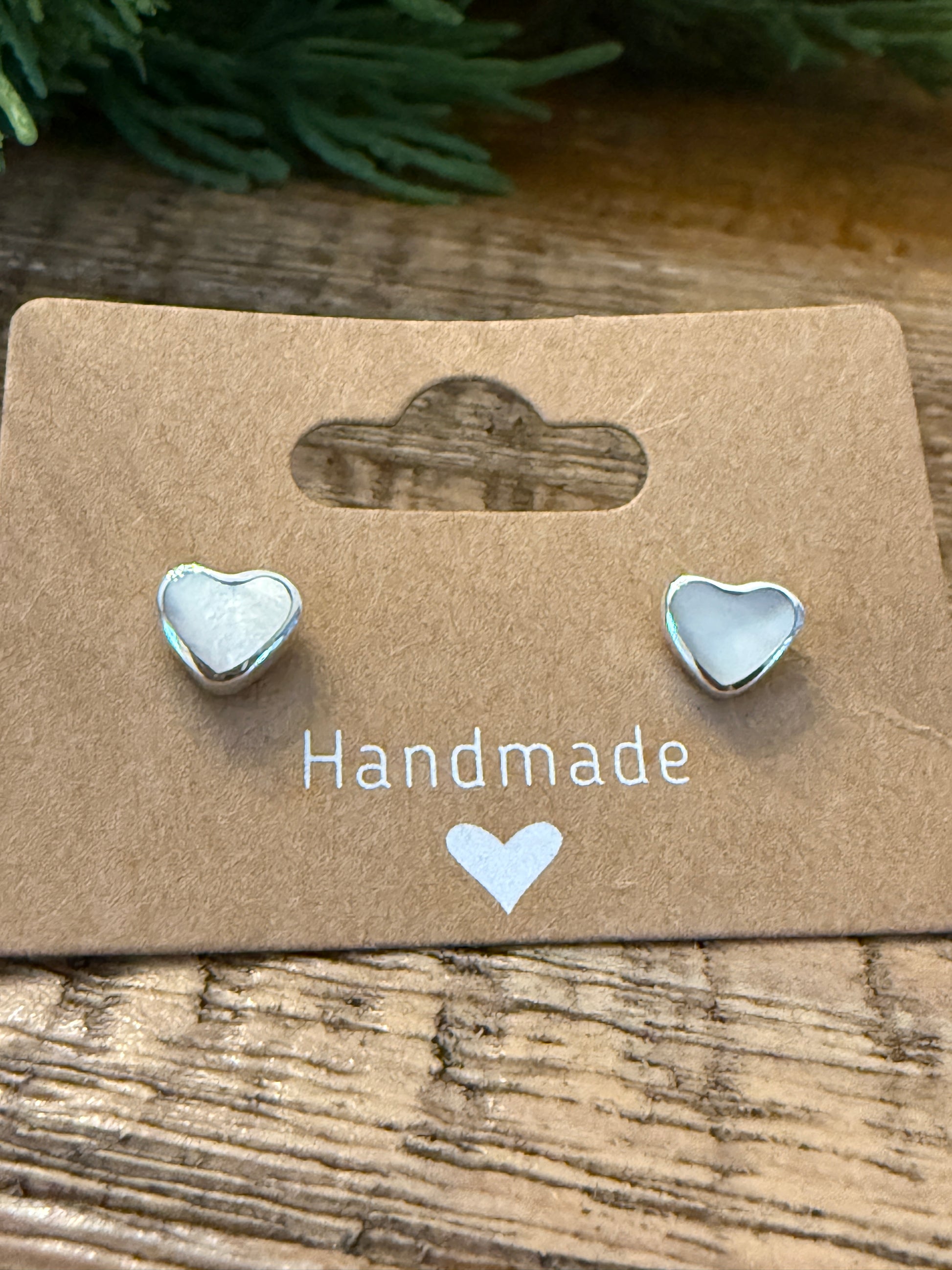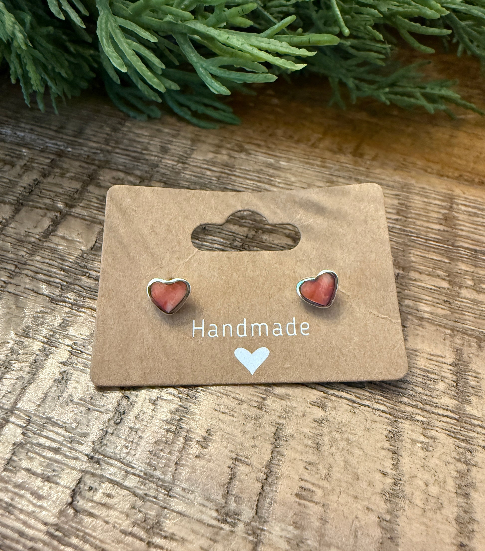 Handcrafted with care, these elegant heart-shaped stud earrings are made from .925 sterling silver and feature a delicate inlay of semi-precious stones from Peru. Each stone is carefully set at the center of the heart, adding a subtle pop of color and a meaningful artisanal touch.