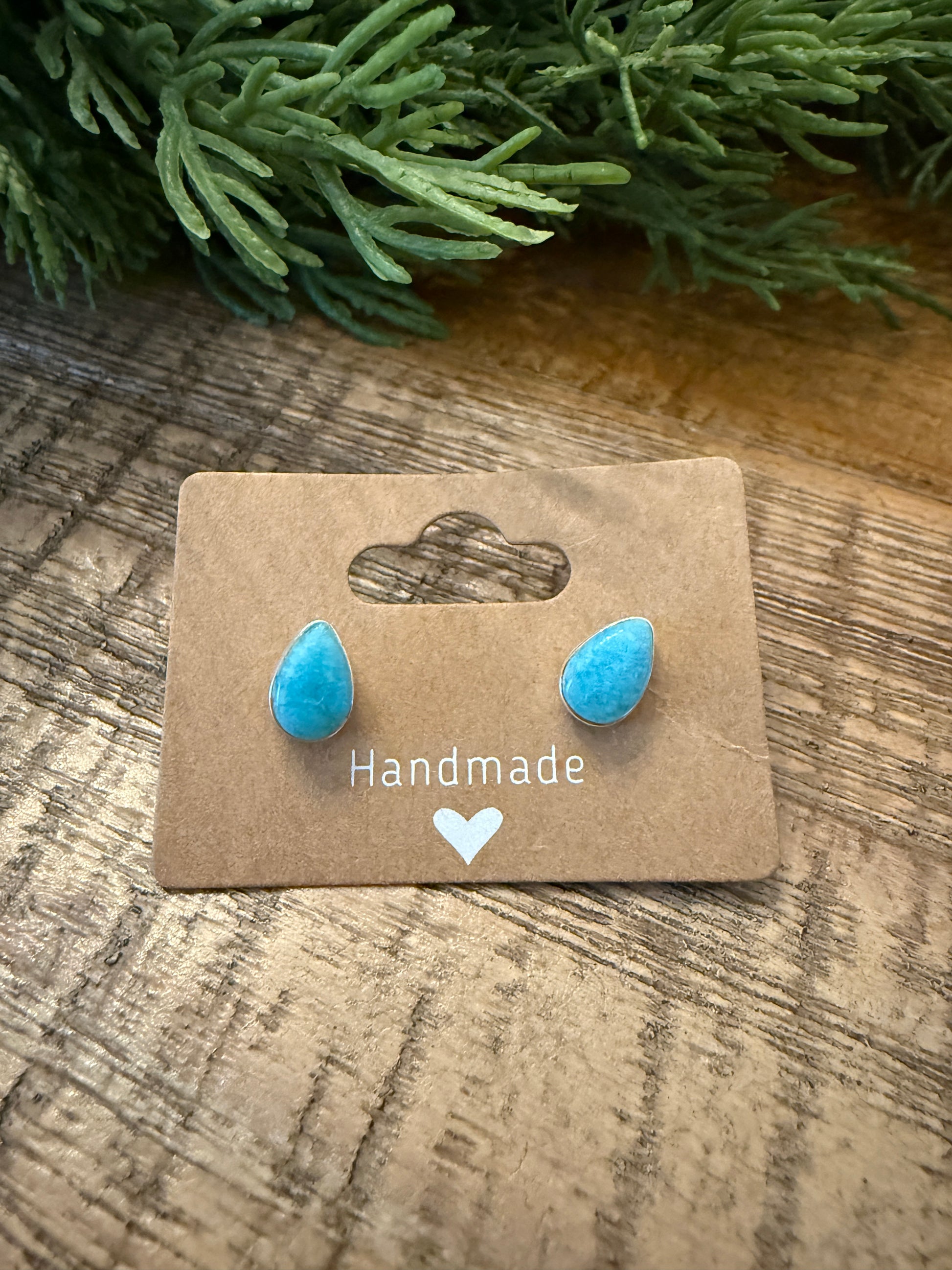 Handcrafted with care, these teardrop shaped stud earrings are made from .925 sterling silver and feature a delicate inlay of semi-precious stones from Peru. Each stone is carefully set at the center of the heart, adding a subtle pop of color and a meaningful artisanal touch.
