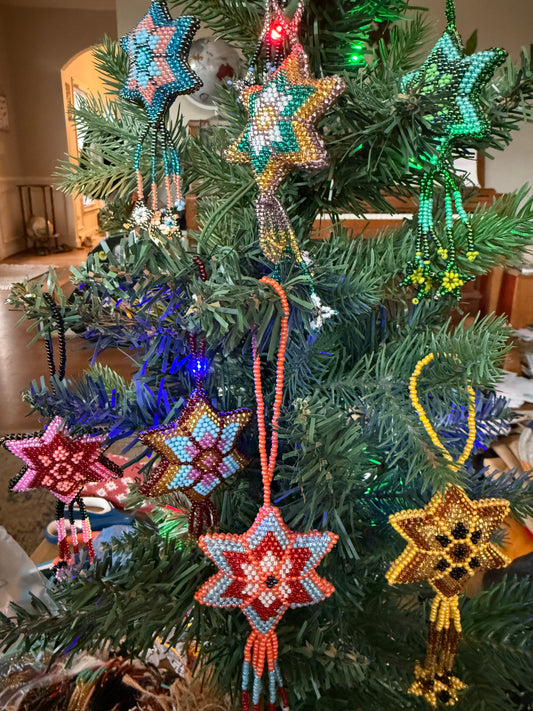Holiday Multicolor Beaded Star with Tassel Ornament